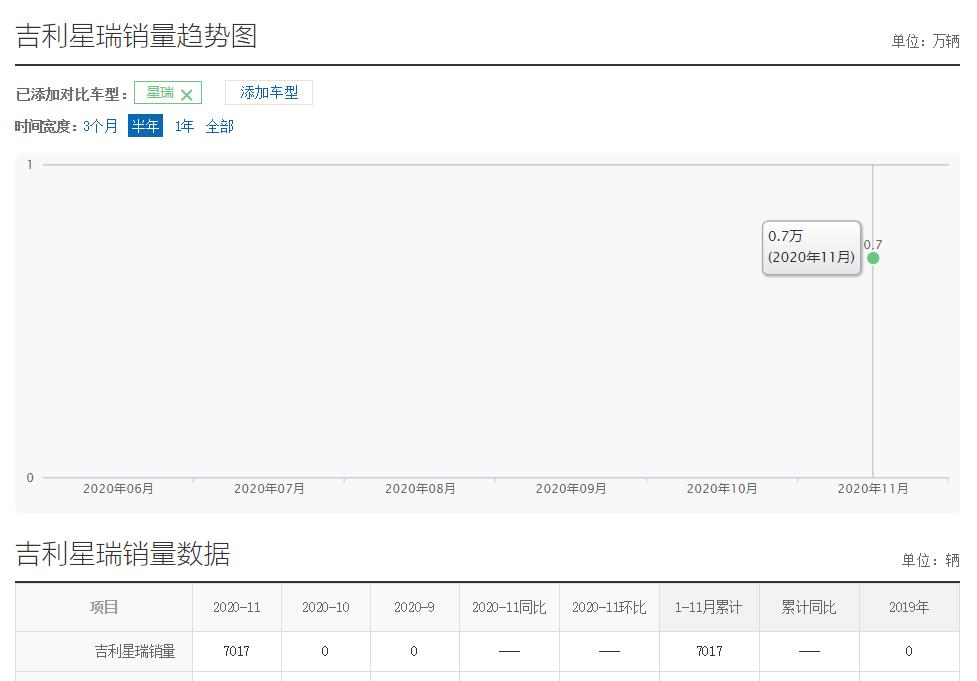 最后,吉利星瑞除了高颜值的外观和强大的动力,还拥有吉利最新的GKUI车机系统和10个扬声器的BOSE音响,所以不管是从实际的享受体验还是车内的豪华氛围,星瑞确实都做到了同级无它,因此也就难怪其声称能一个打十个了。在11月份,星瑞也售出了7017辆新车,表现可以说是抢眼。