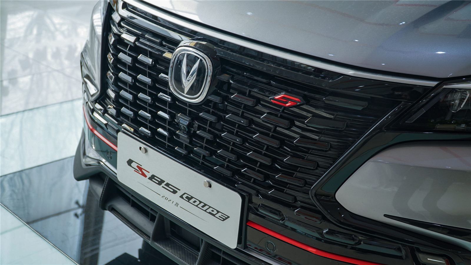 和旧款车型相比,2021款CS85 COUPE在外观部分有小部分的升级,主要变化集中在前脸,中网由原来的银色横幅式格栅变成了黑色点阵形式,并在右侧加入了红色点缀。