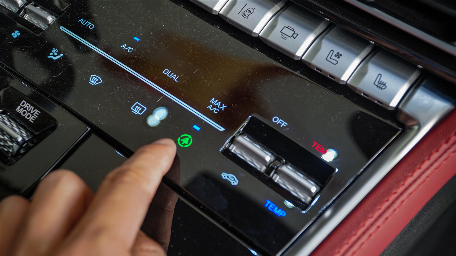中控屏幕下方的按键,造型特别。并且能够看到,具备主副驾座椅通风加热功能。