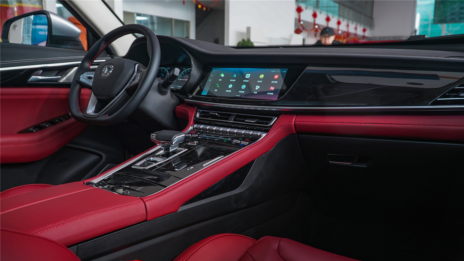 内饰方面,2021款CS85 COUPE最惹人眼的是配色,红色皮质加上黑色亮漆,以及部分位置的氛围灯,使整车的内饰氛围感极强。