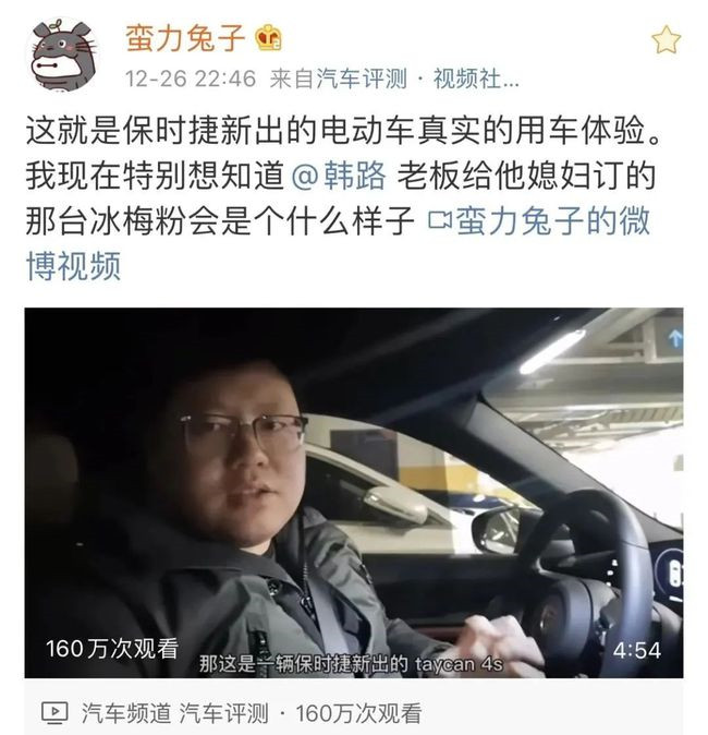 12月31日,「蛮力兔子」发布Taycan体验续集表示,除了他的吐槽视频被各平台处理的很快之外,车的处理方案还没有什么进展。