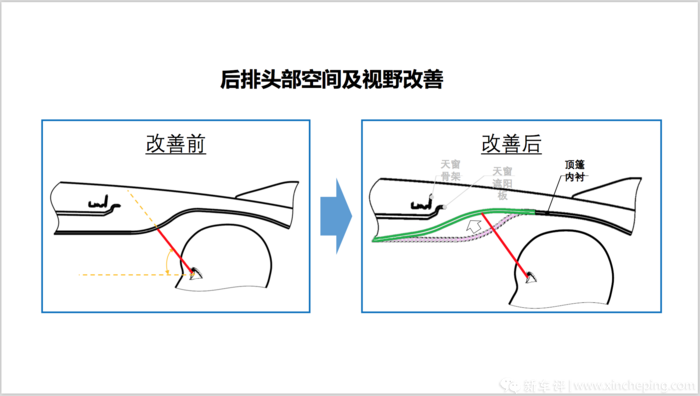 2021款雷凌针对后排乘客头部及视野进行了优化,如图所示。这一细节的调整,实际体验将如何?建议各位对雷凌有兴趣的朋友自己到店去看看实车。