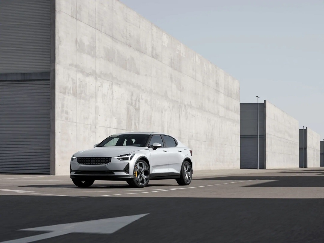 极星2的外观部分非常简约而富有动感,前脸处大灯组依旧采用了“雷神之锤”造型,灯组内设计有“T”字形日间行车灯,前脸中央设计有多边形格栅,格栅内部点缀有正方形叶片。此外,前脸下方还设计有梯形格栅,两侧加装有雾灯,极富科技感。