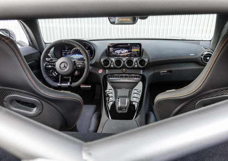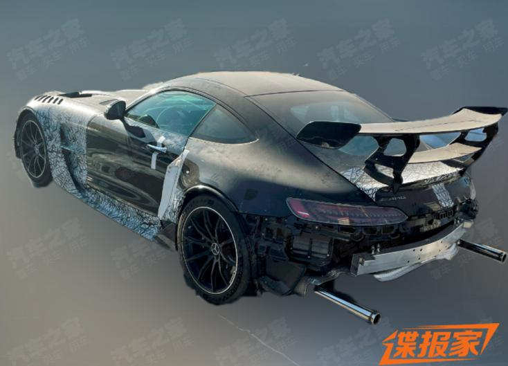 尾部可以看到极其夸张的硕大扰流板,右侧有GT与赛旗的标志,底部标有“Black Series”的标识,证实了该车型的身份。