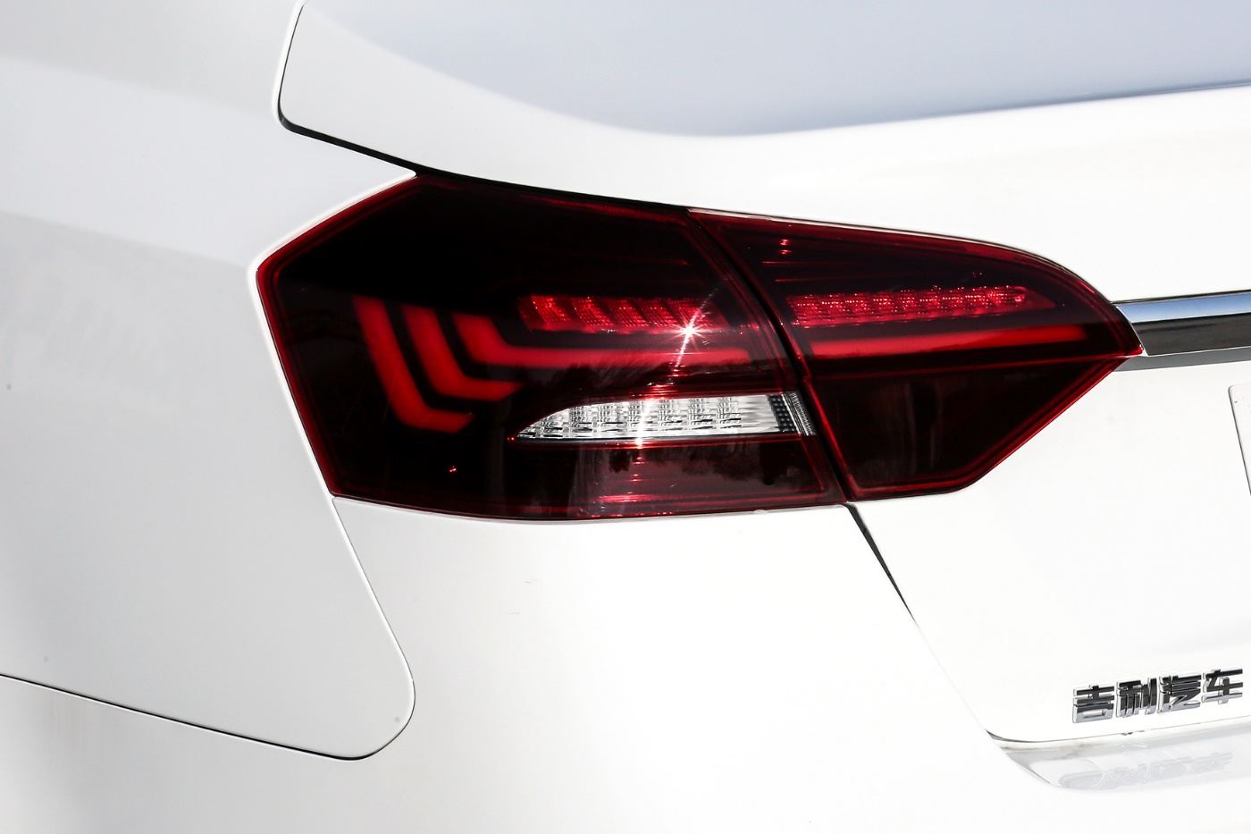 尾部整体设计保持了老款车型的设计,尾灯内部加入了两条平行式LED灯带,点亮以后的视觉效果不错,下方宽大的双边镀铬排气也提升了尾部的运动感。就外观而言,新款帝豪UP整体轮廓没有变化,主要集中在部分细节处有所调整,相比老款车型在档次感方面略有提升。