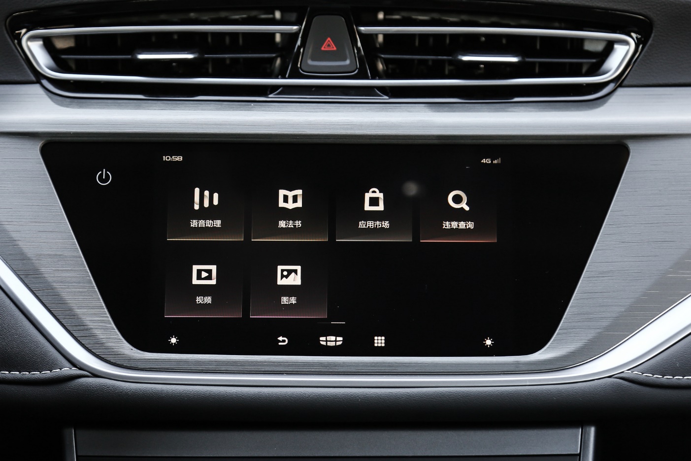 中控区域除了手动挡入门版和自动挡入门版车型外,均配备了一块8英寸嵌入式触控大屏,屏幕造型和中控面板也高度融合在一块,看起来也比较整齐。内置了最新的GKUI19吉客智能生态系统,并且将界面进行了升级,并支持GPS导航、实时路况提醒、蓝牙电话、语音识别控制、以及车联网等诸多时下主流功能。