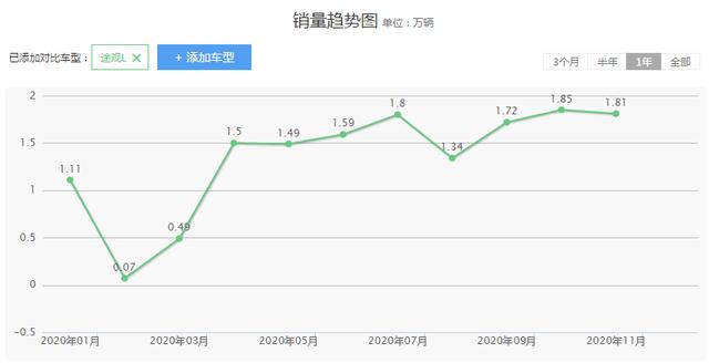 在最近一年的销量当中,我们可以得知,大众途观L也有着不错的销量数据,基本上稳定在月销量1万台左右,这样的骄人成绩,得益于它的综合实力表现以及高性价比,不然我们国人也不会买它的单不是,由此可见,我们可以得知途观L在国人心目中还是深受认可的。