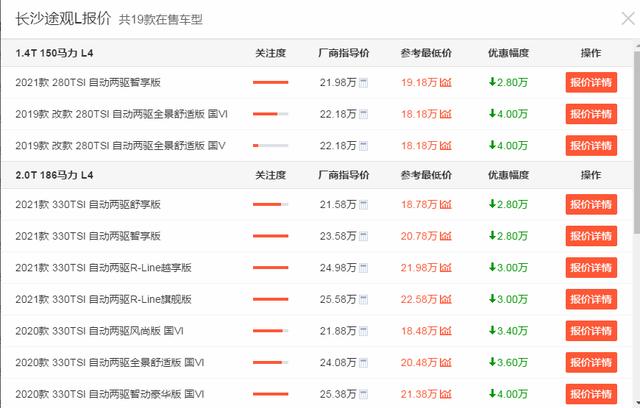 外观方面,大众途观L依旧是采用了家族式的设计语言,前脸的横幅式镀铬进气格栅,引擎盖上硬朗的线条勾勒,加上两侧犀利有神的大灯,给人感觉非常的沉稳大气。21.58万元的起售价,加上较高的优惠幅度,可以说是极具性价比。