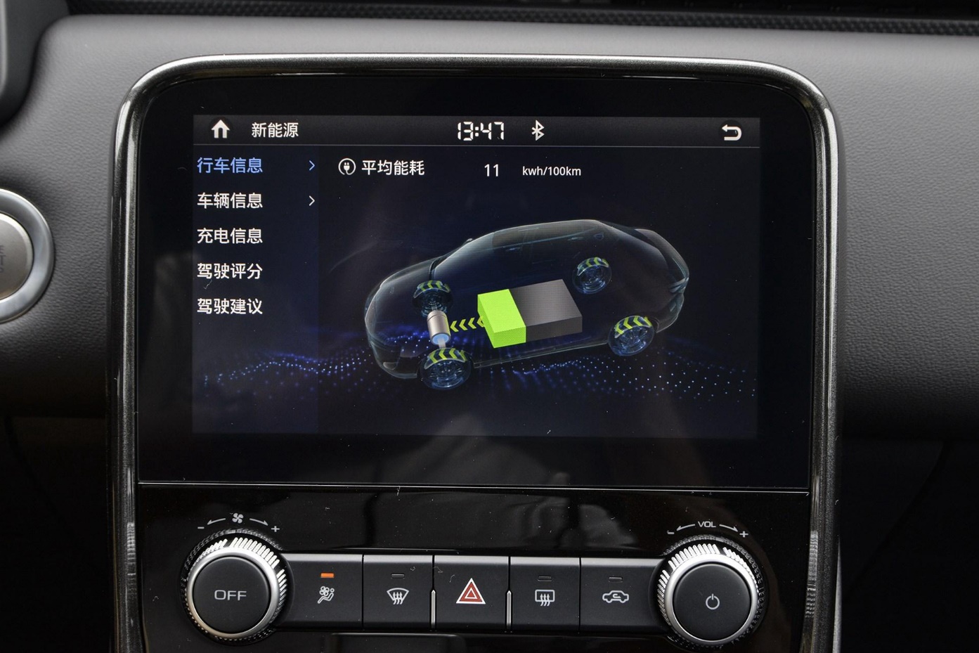 在中控屏新能源界面里,可以显示比较多的车辆状态信息,比如:电量、电机输出功率、驾驶评分、驾驶建议等,能量回收力度只能在屏幕里调节。中控台下方则有一个USB接口和一个12V点烟器接口,不过全车仅有这一个USB接口,实用性还是稍微差了点。