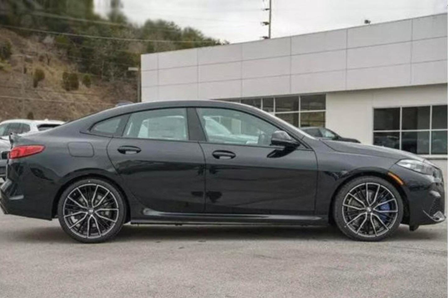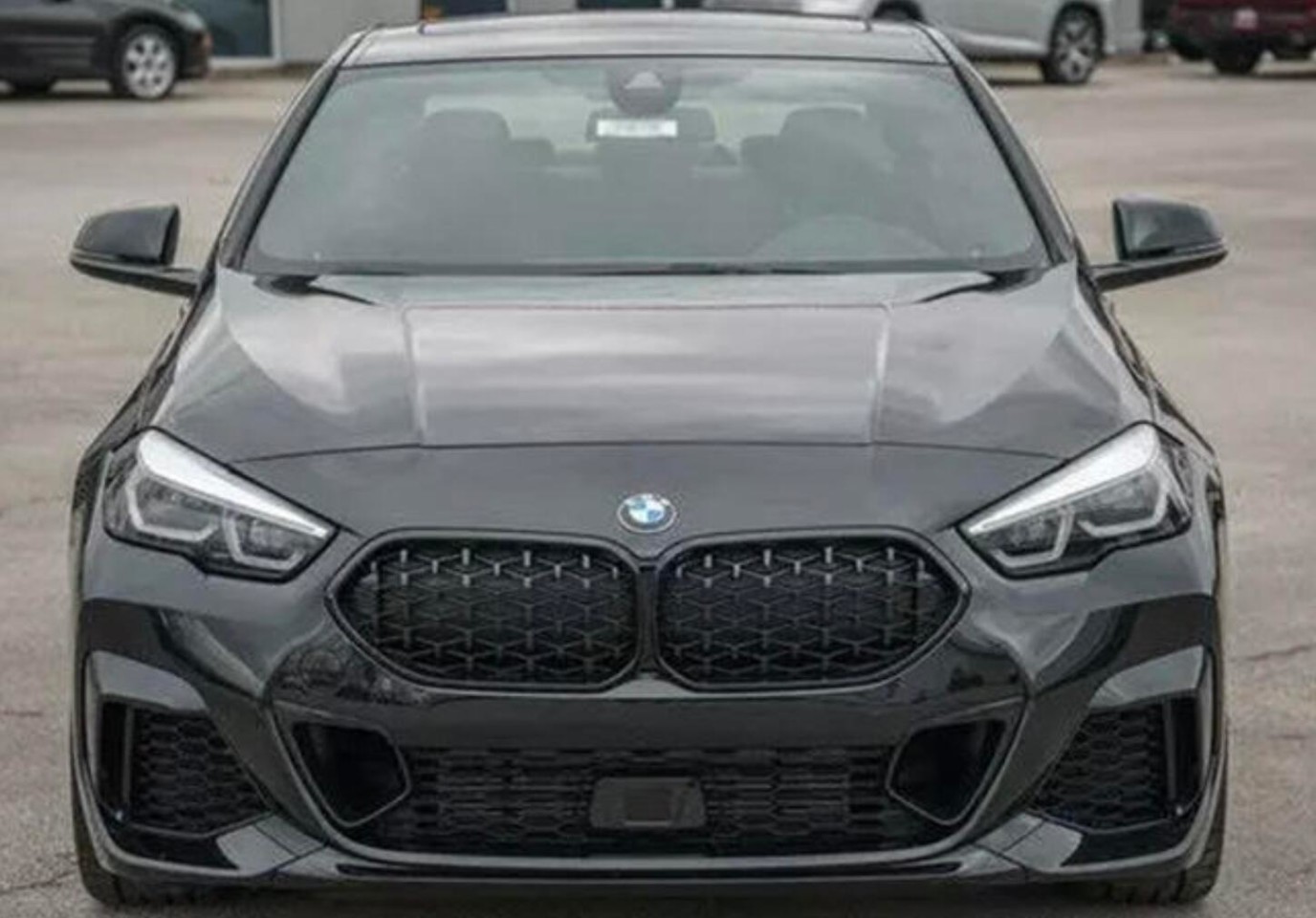 外观方面,全新 2系Grand Coupe四门版车型在外观上采用了最新的设计。与其他宝马车型相比,新车标志性的“双肾”中网在尺寸上略有一些收敛。本次实拍的车型在车头处大面积的进行了黑色处理,夸张的前杠造型也让新车看起来更加的具有战斗气息。而作为四门版车型,新车的侧面线条看起来要修长许多。此外,还配备了低扁平比的运动轮胎与蓝色刹车卡钳。