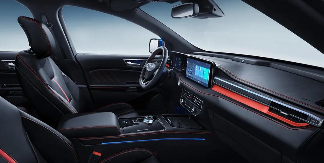 锐界PLUS在内饰上的变化算是颠覆性的,布局由之前的竖向改为横向。标配8英寸液晶仪表和13.2英寸中控屏组成的大联屏。不得不说,横置大屏的加入对提升车厢档次感很有帮助,显得操作区域有科技感,这正是老款锐界所欠缺的,而且还能起到拉宽视觉效果的作用。此外,方向盘样式有所改变,将按键统一放在辐条上,比老款更加简洁。