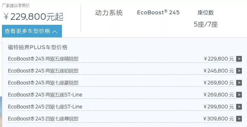 至于29.98万元的四驱版和30.98万元的顶配,配置的增加不痛不痒,钱主要花在四驱系统上,个人觉得性价比不高。另外,福特近几年热度不高,对应的二手车价格也比较低迷,买高配可能意味着未来损失更大,所以各位要更加谨慎。