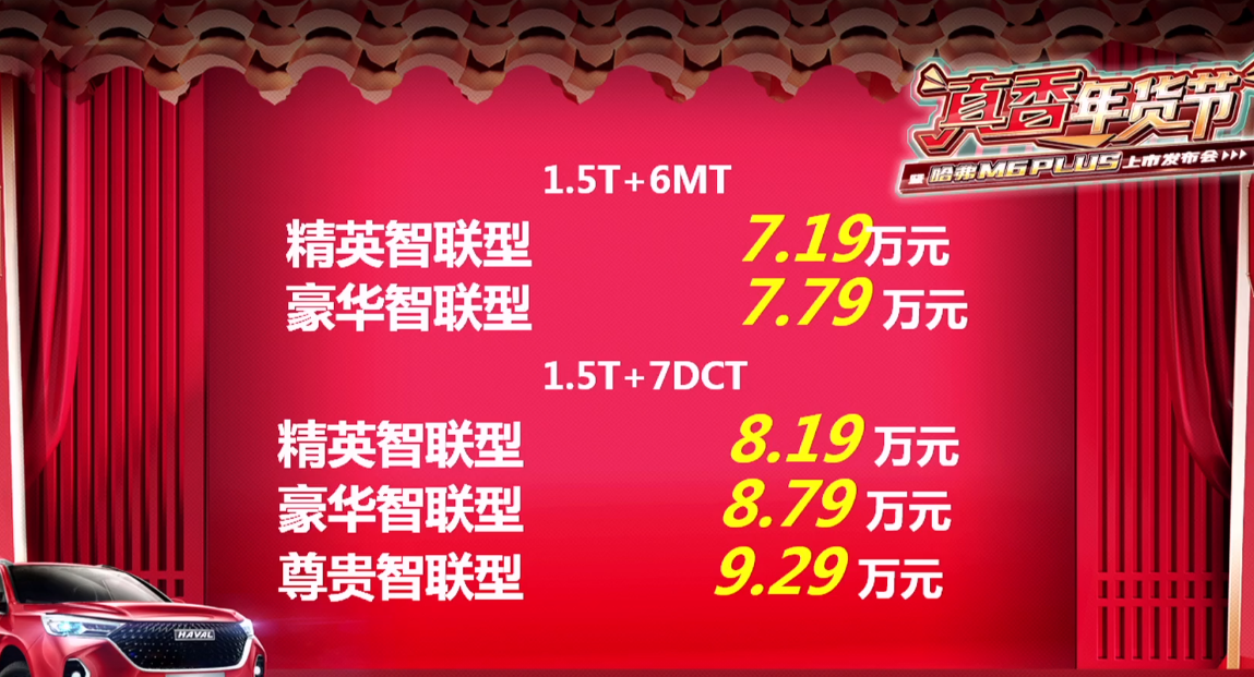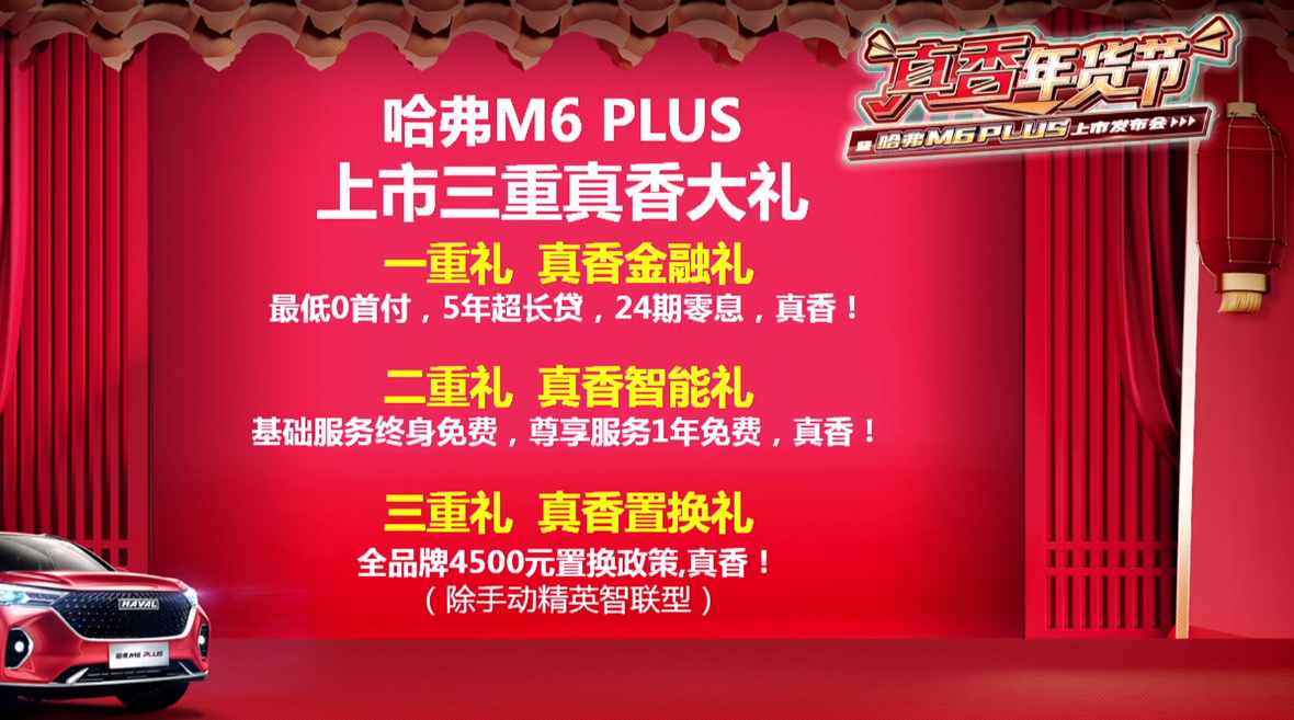 1月6日,长城汽车全新哈弗M6 PLUS正式上市,新车共推出5款车型,预售价或为7.49万-9.59万元。新车可视作哈弗M6的中期改款,此次主要针对外观细节以及内饰部分进行了调整,动力方面将继续搭载1.5T发动机。优惠政策方面,哈弗M6 PLUS推出上市三重真香大礼,提供了最低0首付、5年超长贷、24期0息、基础服务终生免费、尊享服务1年免费等钜惠,此外,全品牌均可享受4500元置换政策(手动精英智联型除外)。