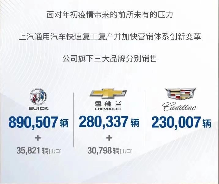 就在近日,上汽通用正式公布了2020年全年销量报告,数据显示,上汽通用汽车2020年全年共销售1467470辆,其中别克品牌为上汽通用的销售主力,全年共售出926,328辆新车,雪佛兰和凯迪拉克品牌则分别销售311,135辆和230,007辆。