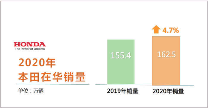 1月6日,本田中国发布数据,2020年在华终端销量162.69万辆,同比增长4.7%。其中,广汽本田全年终端销量80.65万辆,同比增长5.4%,东风本田全年终端销量82.03万辆,同比增长4.0%。这三个数据均创下历史新高,疫情不影响本田的销量开挂。