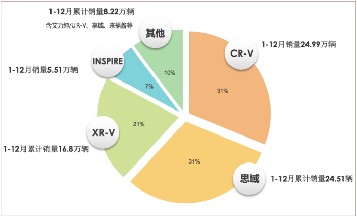 论印象来说,广汽本田明星车多一些,雅阁、皓影、缤智、奥德赛,还有凌派和飞度,想不到全年销量来说,东本还要多出2万台,可见大爆款的作用非同小可,CR-V和思域细分控场能力实在太强大了。