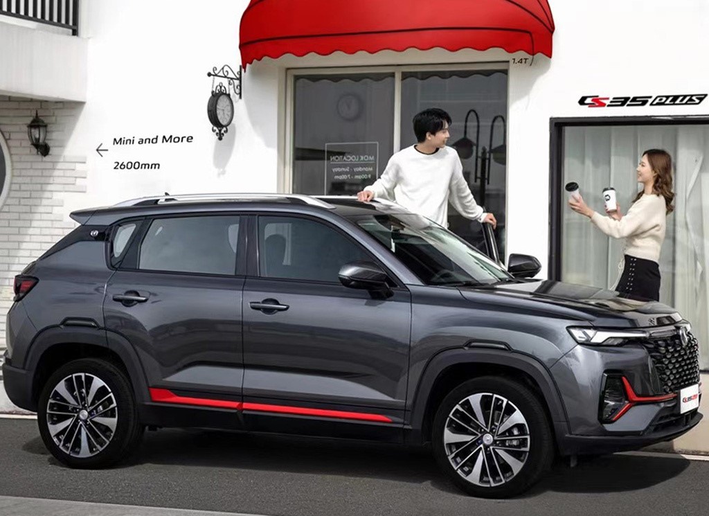 外观方面,新款CS35 PLUS采用了全新的家族化外观,整体造型极富运动感。前脸部分采用了贯穿式日间行车灯,两侧大灯组为分体式造型,上方设计有造型新颖的日间行车灯,下方设计有大灯,大灯中央还设计有贯穿式红色饰条,视觉效果非常不错。