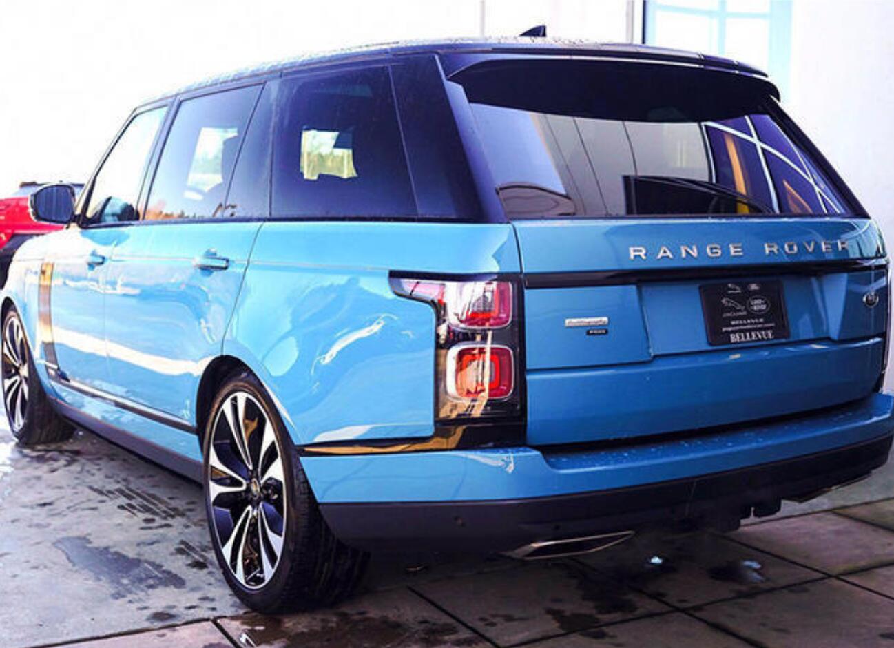 外观方面,此次发布的纪念版车型以路虎揽胜作为基础,此次实拍到的车型选用了更显尊贵的托斯卡纳蓝色车漆与22寸铝制轮圈,并且在车尾还加入了特殊的铭牌以凸显其独特的身份。