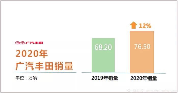 1月6日,广汽丰田发布最新数据,其12月销量7.21万台,同比增长25%,2020年累计销量76.5万台,同比增长12%。其中,TNGA家族全年累计销量54.48万台,同比增长42%;SUV家族全年累计销量23.46万台,同比增长47%;混动车型共卖出9.33万台,同比增长33%;新能源车累计销量1.22万台,同比增长25%。