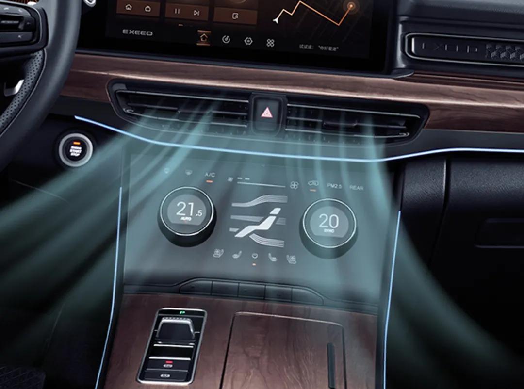 揽月的内饰还挺显档次的。简单的横向布局,采用时髦的全液晶仪表+中控屏联屏的设计,两块屏幕尺寸均为12.3英寸。空调面板大面积功能为触控操作,温度调节为旋钮设计,变速箱挡把为电子拨杆设计。座椅和门板加入菱格纹图案,同时采用拼色加强层次感。