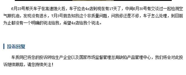 这一位保时捷Macan车主反映,自己的车在高速路面上行驶的时候突然熄火,之后就在4S店进行检测,并告知非质量问题,既然非质量问题,检测也没查出缘由,那总得要有一个说法吧?难不成车主还有突然熄火功能,还在人员没有出事,不然后果不堪设想。