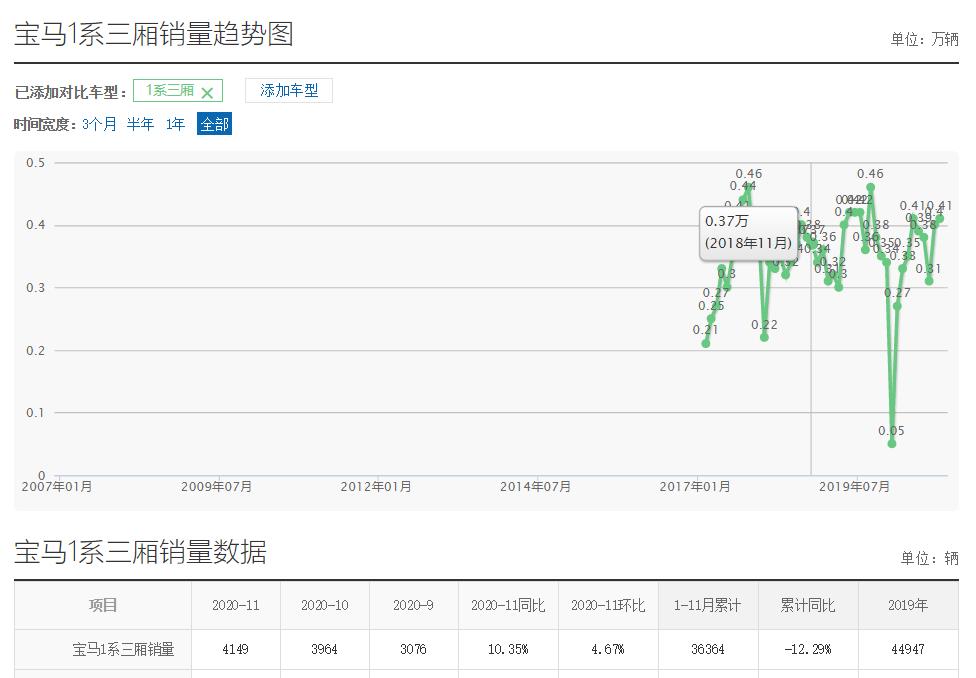 只可惜,宝马一上来就不“争气”,搞出了个1.5T三缸机+前置前驱的宝马1系三厢,变速箱还是被最多人所吐槽的双离合,这可就瞬间让消费者对它的好感值降到最低了。而纵观宝马1系三厢版车型自2017年3月正式上市起至今的销售生涯,单月最好的销量也才不过4600辆,而且这还是建立在宝马没过多久就为其实行了大幅度降价措施的基础之上,因此,你说宝马1系三厢能打吗?显然不是奥迪A3的对手。