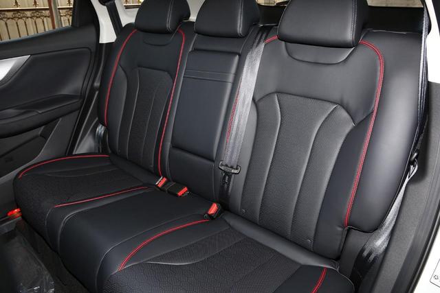 后排座椅材质和前排保持一致,配有三个独立头枕,并且靠背宽大,一定程度上保证了中间乘客的乘坐的安全性,中央地台也没有明显的凸起。后排也配备有独立空调出风口和一个USB充电接口。