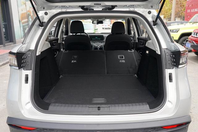 后备厢空间也比较充裕,内部规整,两侧还带有网兜,后排座椅按比例放倒后能形成一个纯平的空间,基本上能够满足大家对一款紧凑型SUV的装载需求。