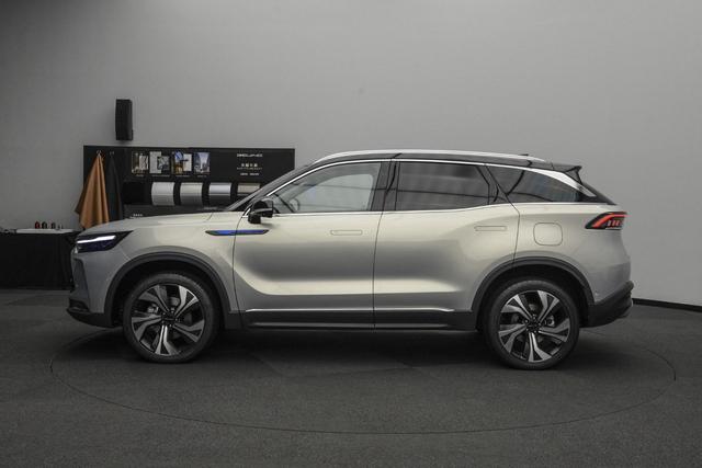 车身侧面,采用了两段式腰线的设计,并配备了隐藏式把手,这对于一款10万级紧凑型SUV来说,还是显得有几分"造车新势力"的气质。车侧尺寸上,长宽高分别为4710/1892/1715mm,轴距2800mm。采用18英寸铝合金双色轮圈,整个侧面看起来也比较运动。