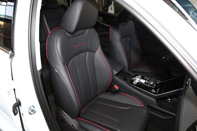 前排座椅采用皮质包裹,包裹和支撑性不错,主驾驶座椅支持电动调节,座椅靠背上方还有"BEIJING"字样的刺绣,增加了一定的辨识度。