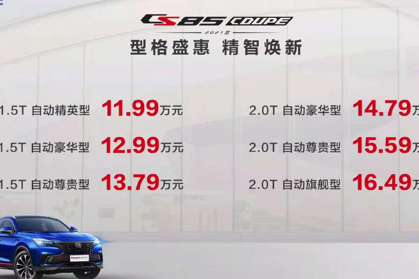 轿跑SUV这股风潮好像也就近些年才突然爆了起来,确实为求缓解普罗大众日趋显著的审美疲劳,眼下各家主流车企都绞尽脑汁梳理现有的产品线,以及煞费苦心加快推陈出新的步伐。洞悉市场走向和消费者需求的长安汽车官宣2021款CS85 COUPE正式上市,指导售价为11.99-16.49万元。
