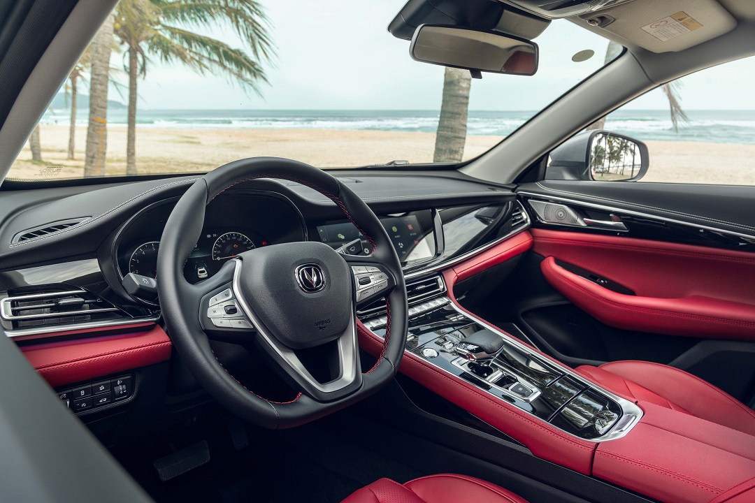 内饰方面,新车中控台依然采用标准的T字形布局,中控台各个功能区布局合理,并采用大面积软质材料、真皮材质和黑色钢琴漆装饰,再加上黑色、灰色和红色三种颜色搭配,使得车内的品质感和精致感十分到位。此外,车内还配备了7英寸全液晶仪表盘和12.3英寸可触控中控屏,并搭载梧桐车联TINNOVE系统,支持车载微信、高德地图等第三方应用,使得车内的智能化科技体验十分出色。