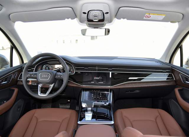 至于内饰方面,奥迪Q7看上去非常的豪华科技,尤其是中控区域的上下双屏设计,还有全液晶仪表箱,可以说是极具科技感,贯穿式的空调出风口,非常吸引人的眼球,钢琴烤漆饰板的覆盖,镀铬的运用,以及大面积皮革材质的包裹,尽情展现了一台豪华SUV应有的水准。对于这样的内饰氛围,奥迪Q7相较于同级别车型而言,它的整体表现还是可圈可点的。