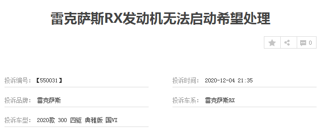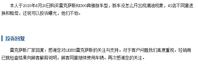 其实,对于目前在售的2020款雷克萨斯RX,存在的问题并不少,不过,小编想说的是,对于车主投诉的反映情况来看,他们都是购买后不久就出现的问题,对于这样的情况,也不知道雷克萨斯RX是如何把控的品质,难不成品质开始下降了吗?小编也不是说雷克萨斯RX这款车型不好,只是对于目前存在的客观事实,感到有所惊讶,毕竟,在网上被那么多网友各种“吹嘘”,这车这里那里到处都好,事实真是如此吗?所以,朋友们在购车的时候,还是要多结合自身购车需求以及综合考虑,尽量“避坑”。