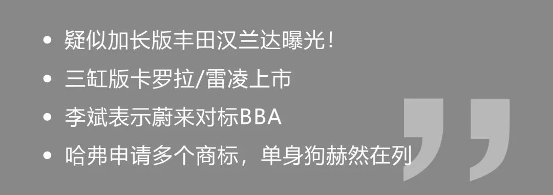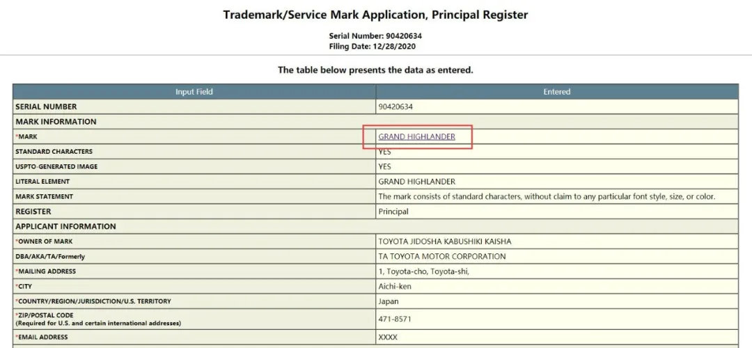 全新一代丰田汉兰达尚未国产换代,丰田就又在北美市场申请了“GRAND HIGHLANDER”的商标,直译过来就是“大汉兰达”。这似乎也预示着,丰田汉兰达将在北美市场推出一款加大版车型,用来对标尺寸更大的大众途昂以及雪佛兰Traverse等车型。