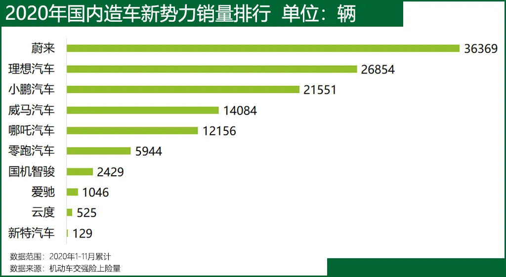↓ 2020新势力销量被特斯拉吊打 ↓
