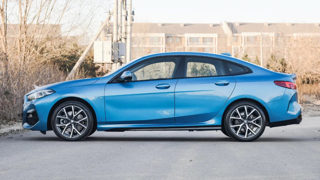 通过车侧的视角也能看出,2系GranCoupe的车头是比较短且高的,无框车门再加上比较紧凑的溜背线条直接与传统三厢车拉开了差距,18英寸的密辐条轮圈也显得十分运动。