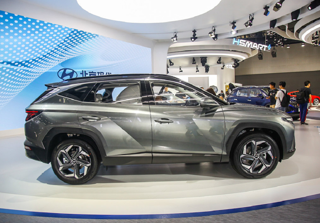 车身侧面,全新途胜L流畅光滑的线条,塑造出棱角分明的外形。同时,新车轮眉采用黑色材质塑造,搭配大尺寸“花瓣式”轮圈,看上去运动感十足。