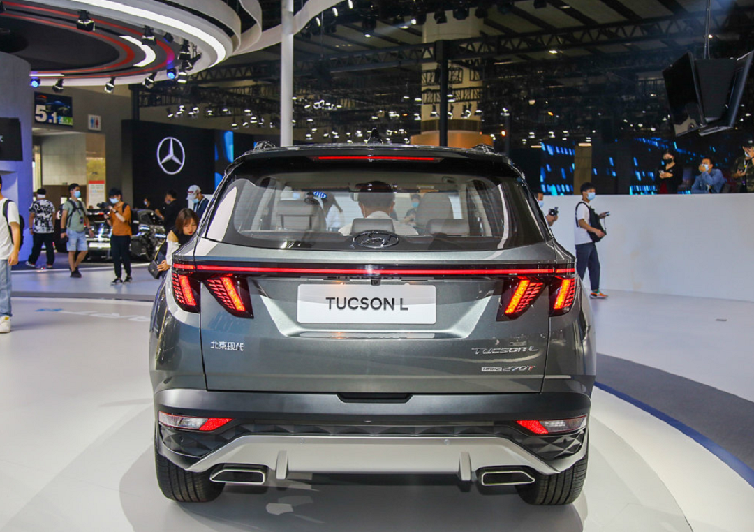 全新途胜L尾部采用了当下最流行的贯穿式灯带设计,搭配两侧造型新颖的獠牙式灯组,预计在夜晚点亮后的有着不错的视觉效果。同时,新车还在底部加入了大尺寸的后保险杠,让整车显得格外稳重。