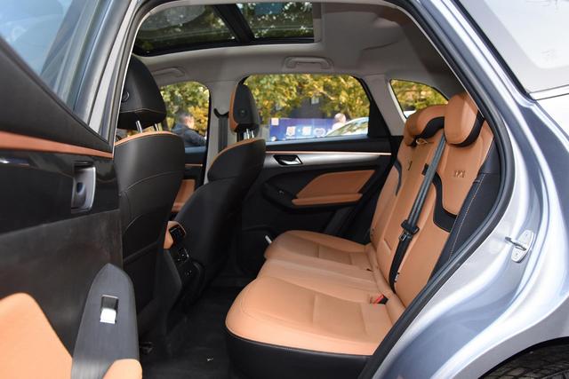 中高配车型座椅表面为黑棕双色仿皮材质,座椅造型足够宽大,采用了人体工程学设计,椅靠背在中部新增了品牌的字母LOGO,包裹性支撑性表现都不错。中高配车型除了支持电动调节外,还支持座椅加热功能。
