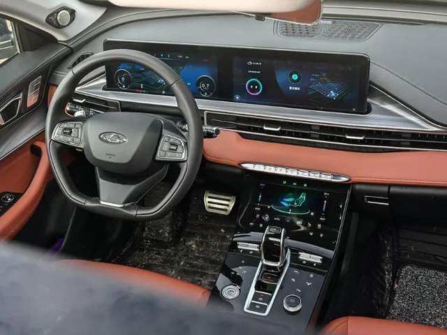 瑞虎8 PLUS的内饰设计偏向豪华感和科技感,12.3英寸双联屏设计,就连空调控制面板都采用了8英寸的触控屏,科技氛围提升很大一个档次;