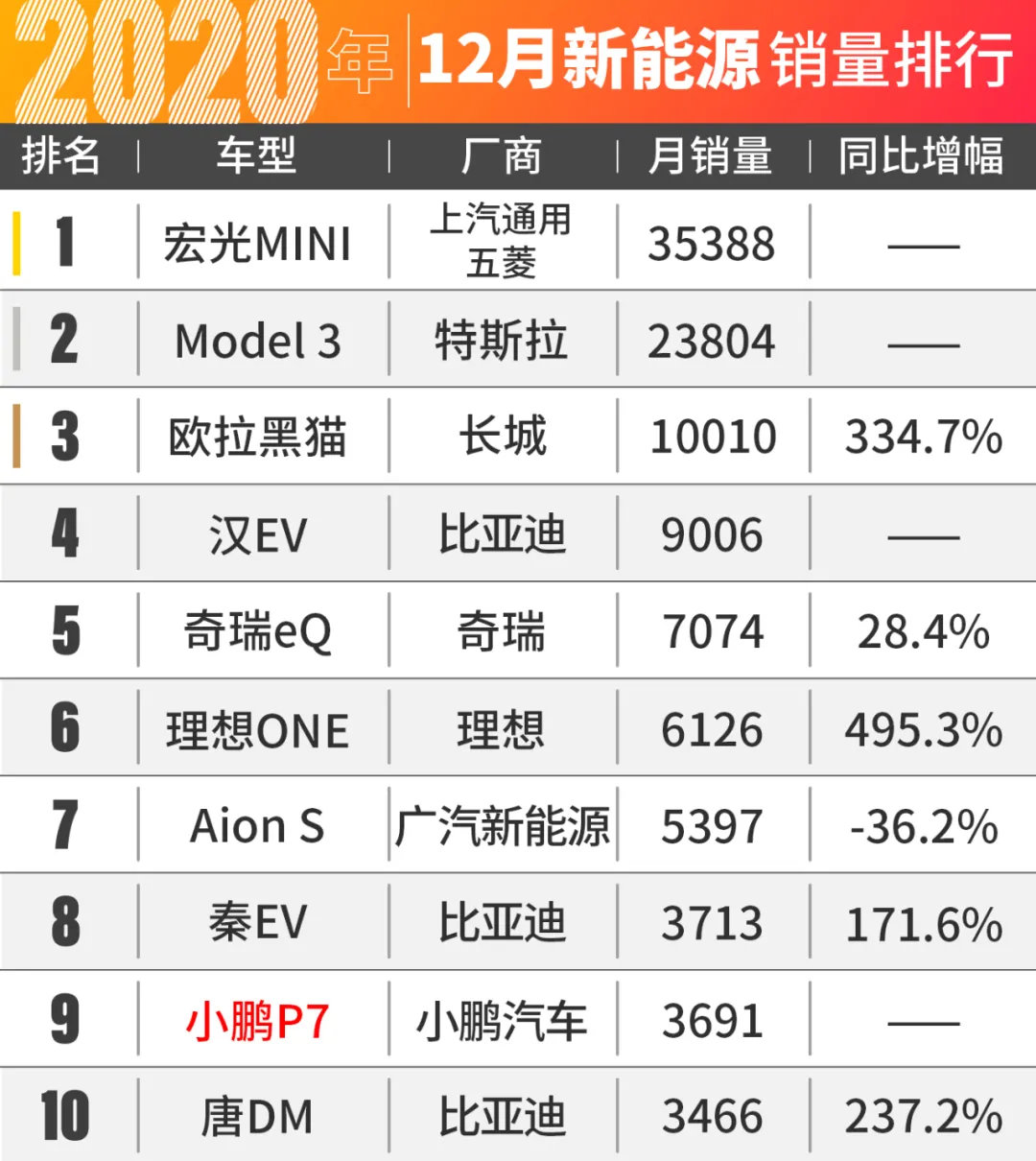 小鹏P7本月上榜第9名给了我一个很大的惊喜。虽然从P7的驾驶感受来看,这台车确实物有所值,不过自上市以来,P7却从未出现在销量榜中。可现如今,随着P7的登榜,这台驾乘感受出色,悬架无可挑剔的国产电动车也终于展现出了自己的实力!