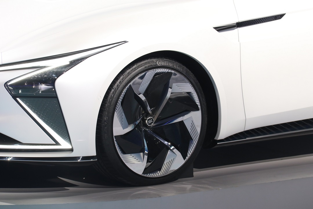 下方轮圈尺寸较大,内部采用刀锋样式设计,有着出色的运动效果。此外,该车配备了在电动车型上较为常见的隐藏式门把手设计,并在车顶设置了高清摄像头。