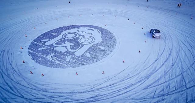 换上钉胎,我们开始开着大狗在冰面上撒野了。哈弗设置了定圆漂移、绕桩、刹车等试驾科目,而最令人期待的莫过于漂移了。