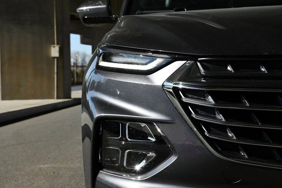 格栅两侧的大灯组凯捷采用的是分体式LED设计,尤其是下半部分带有透镜的矩阵式光源,让前脸看上去更具有层次感与科技气息。
