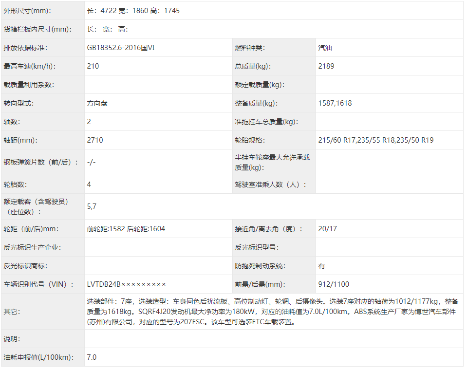 动力方面,新车将搭载2.0T涡轮增压发动机,最大功率将达到254马力,动力强悍,申报油耗值为7.0L/100km。