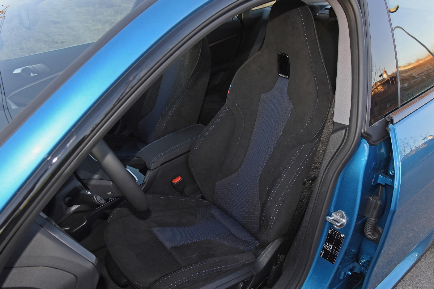 前排座椅采用运动一体式设计,表面使用了织物和Alcantara材料,中间还有蓝色元素装点,能够提供一个不错的支撑和包裹性表现,中高配车型具备主副驾驶位电动座椅调节,并且带座椅位置记忆功能。