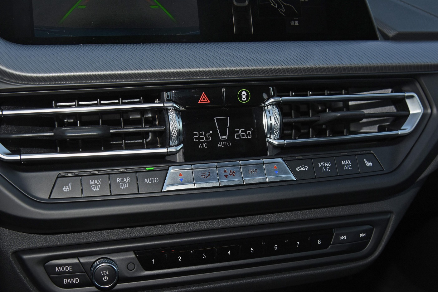 中控大屏下方为双区自动空调的控制面板,保留了常用的实体按键,出风口中央的独立单色屏幕可以显示温度、风速等信息,虽然整体看起来科技感并不是很强,但是操作功能性上还是比较便利。