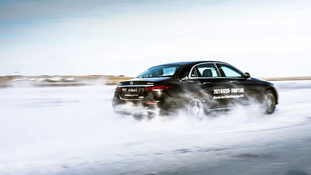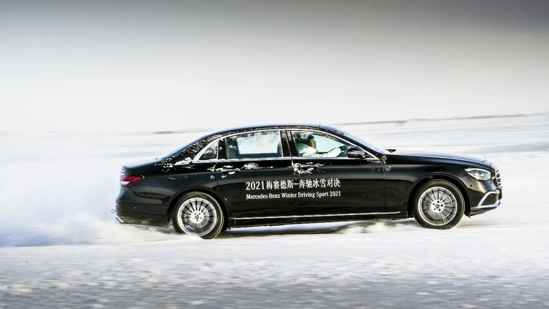 自从奔驰E级 (配置|询价)诞生以来,它就是BBA中大型车里最注重后排体验的那一位。所以一开始,让我用长轴奔驰E级在冰面上漂移,我是十分抗拒的。毕竟用这么一台采用迈巴赫式加长手法的车型在冰上漂移,总会显得有些奇葩。