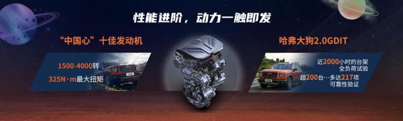 哈弗大狗2.0T四驱版搭载获得2020“中国心”十佳的2.0GDIT发动机,它拥有一系列业内领先优势——高达38.3%的行业顶级热效率,满足国6b和欧美最严格标准的环保排放,减重10%的轻量化指标,以及同级领先的NVH噪音控制能力。